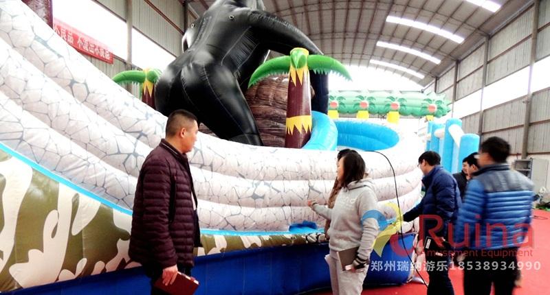 2、所售出的充氣玩具3年內免費提供維修用的膠水、角料;售后部對您定期回訪,指導經(jīng)營!