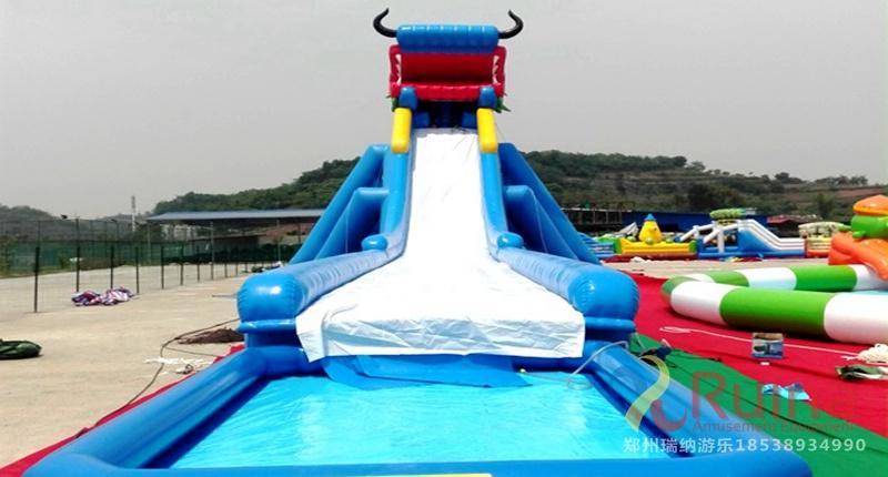 充氣水滑梯造型變化多端、游樂趣味濃烈、驚險(xiǎn)刺激而不失安全,深受兒童喜愛。